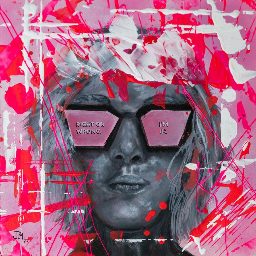 His piece Right or Wrong I’m In is a bold statement of conviction. The figure’s pink lenses cut through doubt, rejecting the illusion of perfect choices or perfect timing. Surrounding splashes of vivid, urgent color reflect the chaos, risk, and energy of real life. The work reminds us that growth comes from stepping forward not from waiting for certainty. Guided by discipline and inner conviction, Maier creates art that invites viewers to think deeper, feel more honestly, and embrace the power of decisive action.