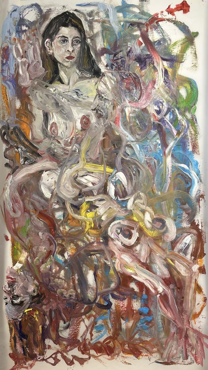 Acrylic, oil and oil pastel on canvas with a textured plaster finish 60X80cm
