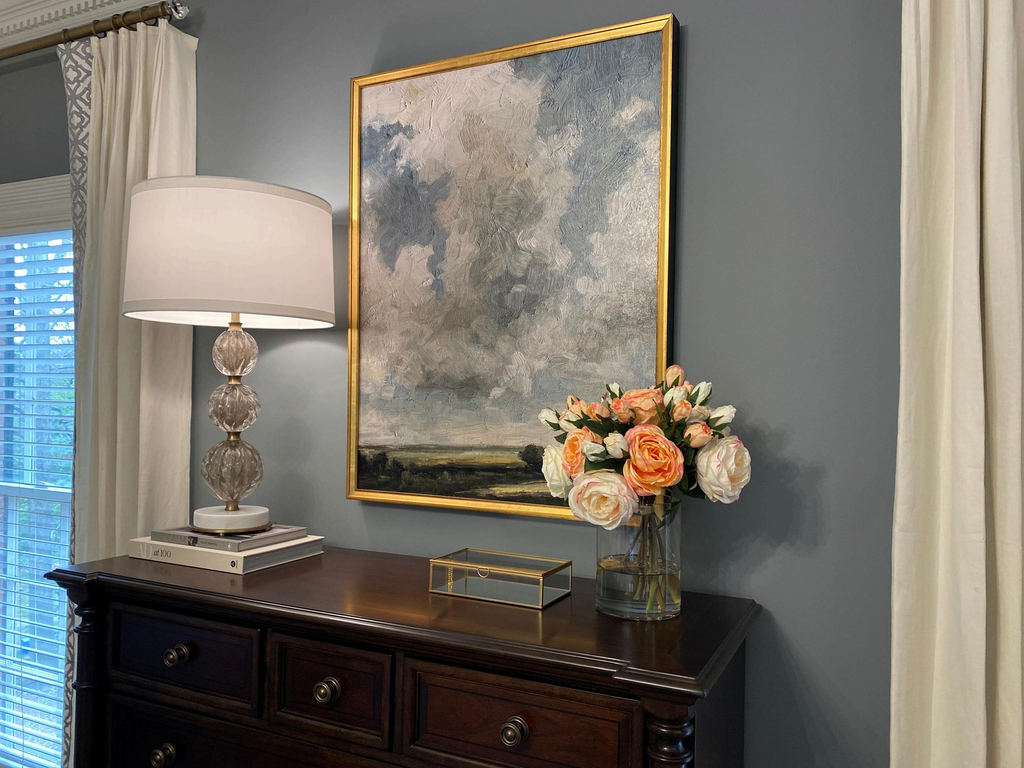 Select&sourcetwosubstantialchairs(neworantique) flankingthewindow,buffet,andlampsforaddedlightingand ambiance.Mayalsosubstitutesomeartwork.
