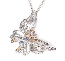 Her piece was crafted in 18ct White Gold with Blue Ceylon Sapphires of different tones and Diamonds set in the butterfly’s body and wings. On the reverse of the pendant/brooch is the Hear & Say Logo in Rose Gold along with an accent feature on the chain in the shape of a paper scroll with ’30 Yrs’ hand engraved." - Tammy Keers