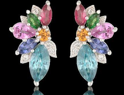 The Borboleta collection expanded to include Drop Earrings. The Borboleta Earrings feature a cascading cluster of bodacious colour. An extraordinary combination of eleven coloured gemstones featuring Spinels, Sapphires and Garnets brilliantly flowing towards the delicate Butterflies perched playfully at the bottom.