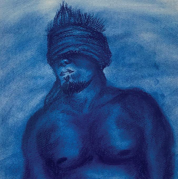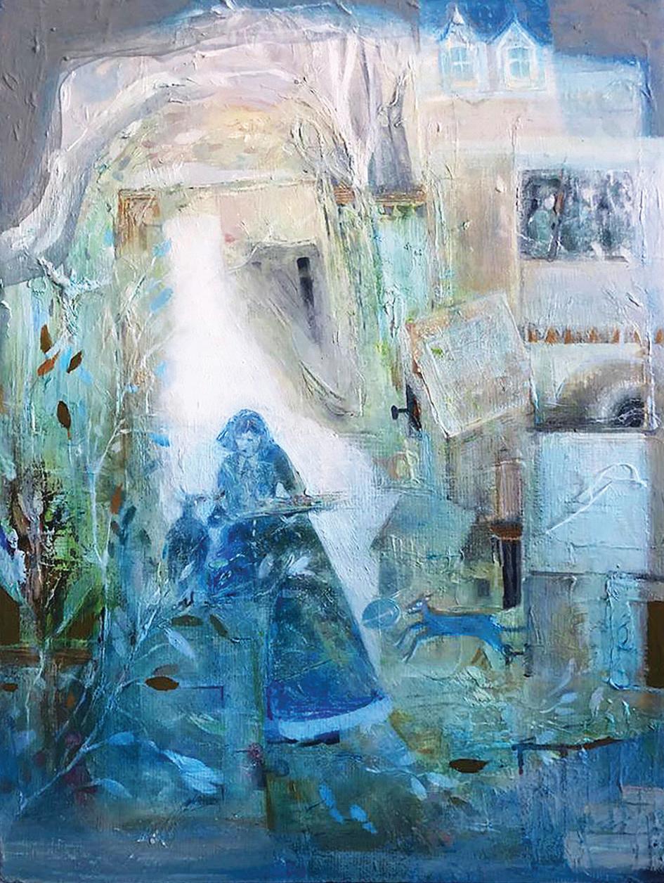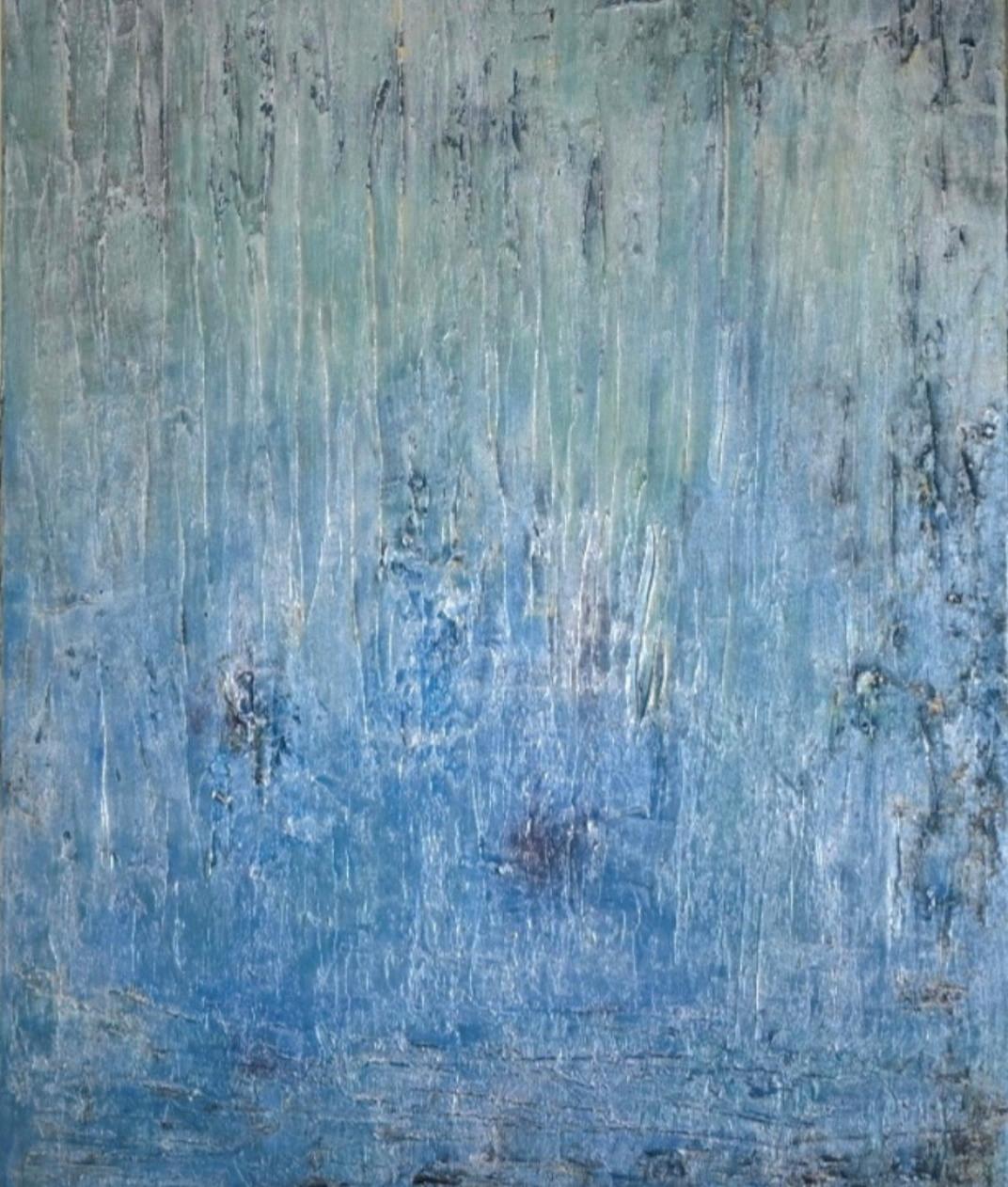 Based in Dublin, Ireland, Erika paints in oils and gesso layers for texture and movement. She captures the viewer by telling her stories from memory and emotions using characters and landscapes imagined. The painting featured is her response to the ‘Blue Girl’ movement in Iran.