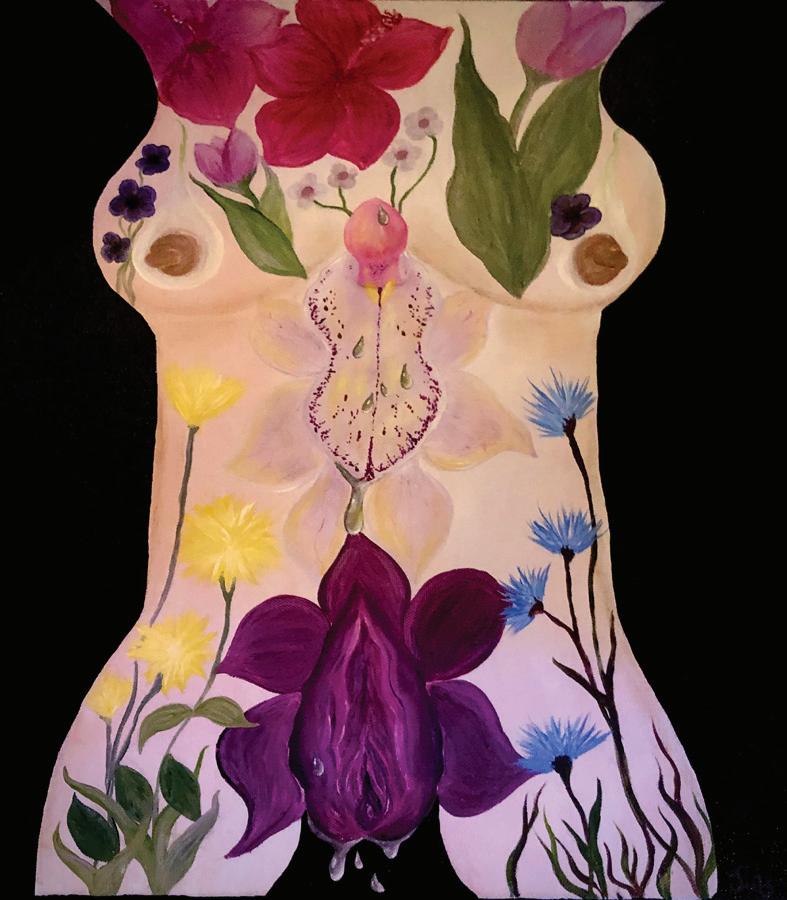 Ali is a watercolor and ink artist. Her saturated, rhythmic use of color to paint women’s bodies and faces, describes the womxn up against herself. She questions the scope of femininity by capturing moments of rage, torture, complacency, joy, nostalgia, and desire. mayimarts.com @mayimarts