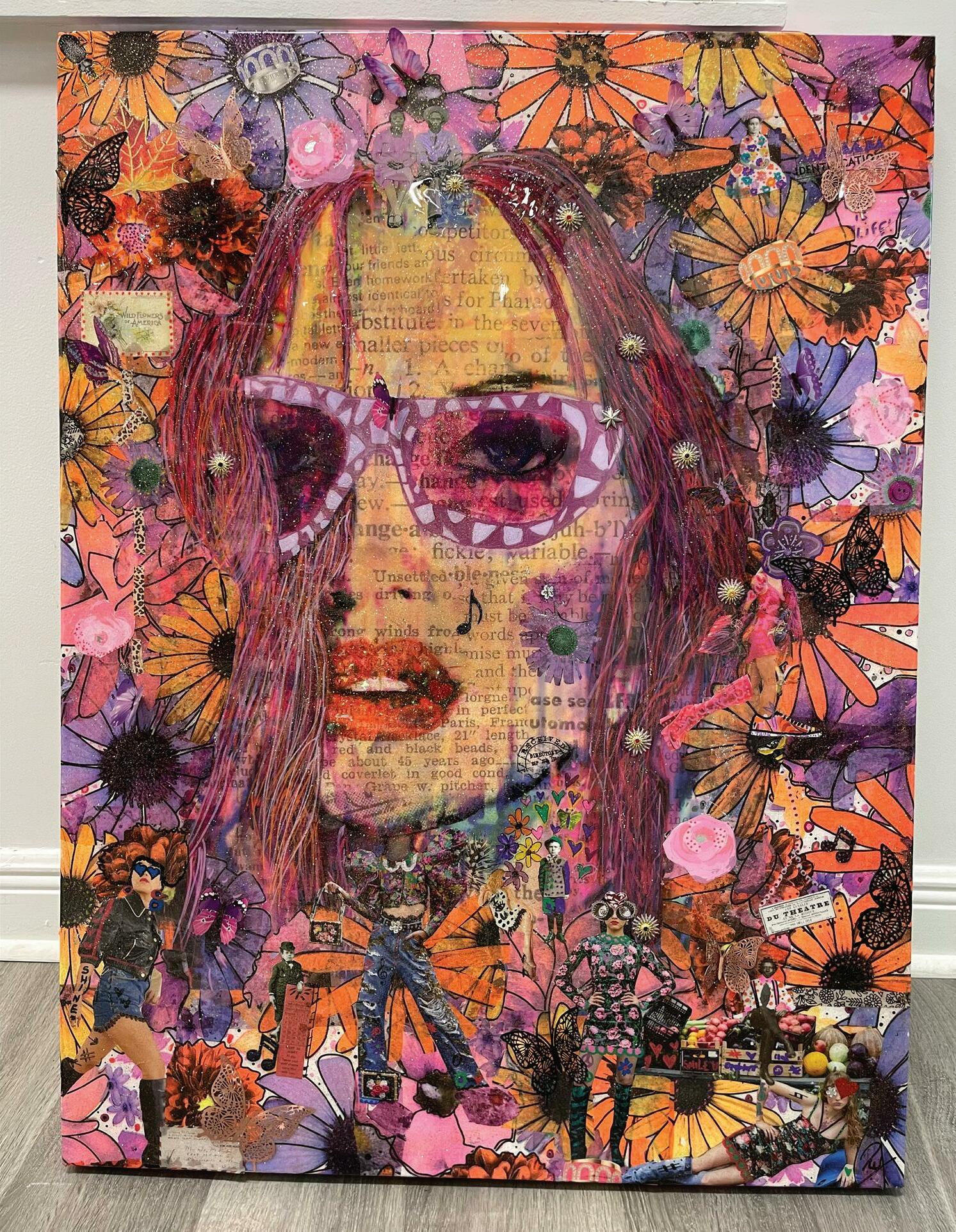 Fly Fly Butterfly mixed media collage 76 cm x 102 cm x 3 cm 2022