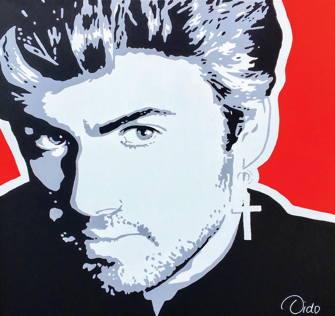 George Michael (top) acrylic on canvas 100 cm x 100 cm x 4 cm 2018