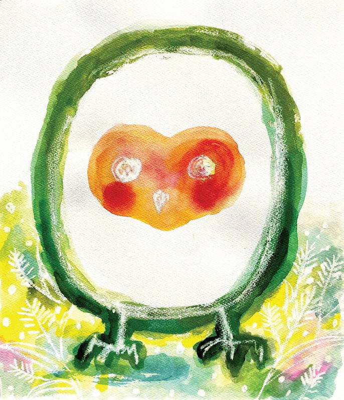 Owl in the forest (top right) crayons, liquid acrylic, watercolor drawing 38 cm x 45.5 cm 2022