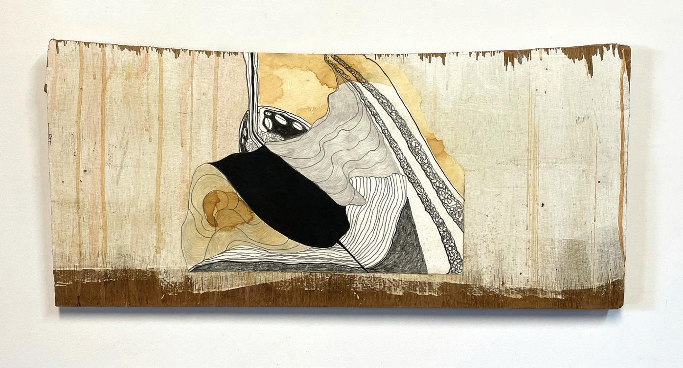 Corpus Callosum (bottom) graphite, charcoal, green tea, paper, wood 11 cm x 24 cm 2022