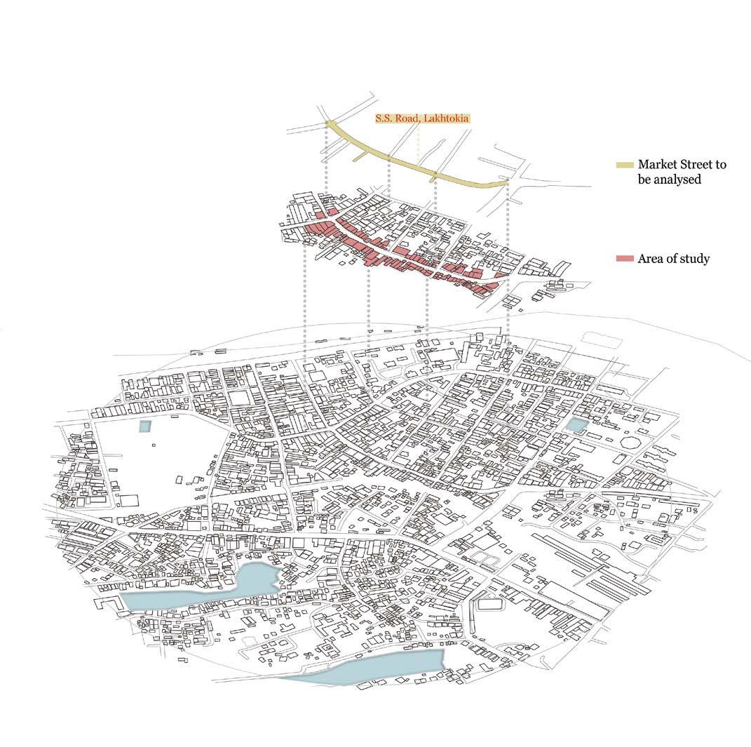 A site with the highest amount of recreational activities was selected, which was an old market street- S.S. Road, Lakhtokia, Guwahati, Assam for analysis and documentation.