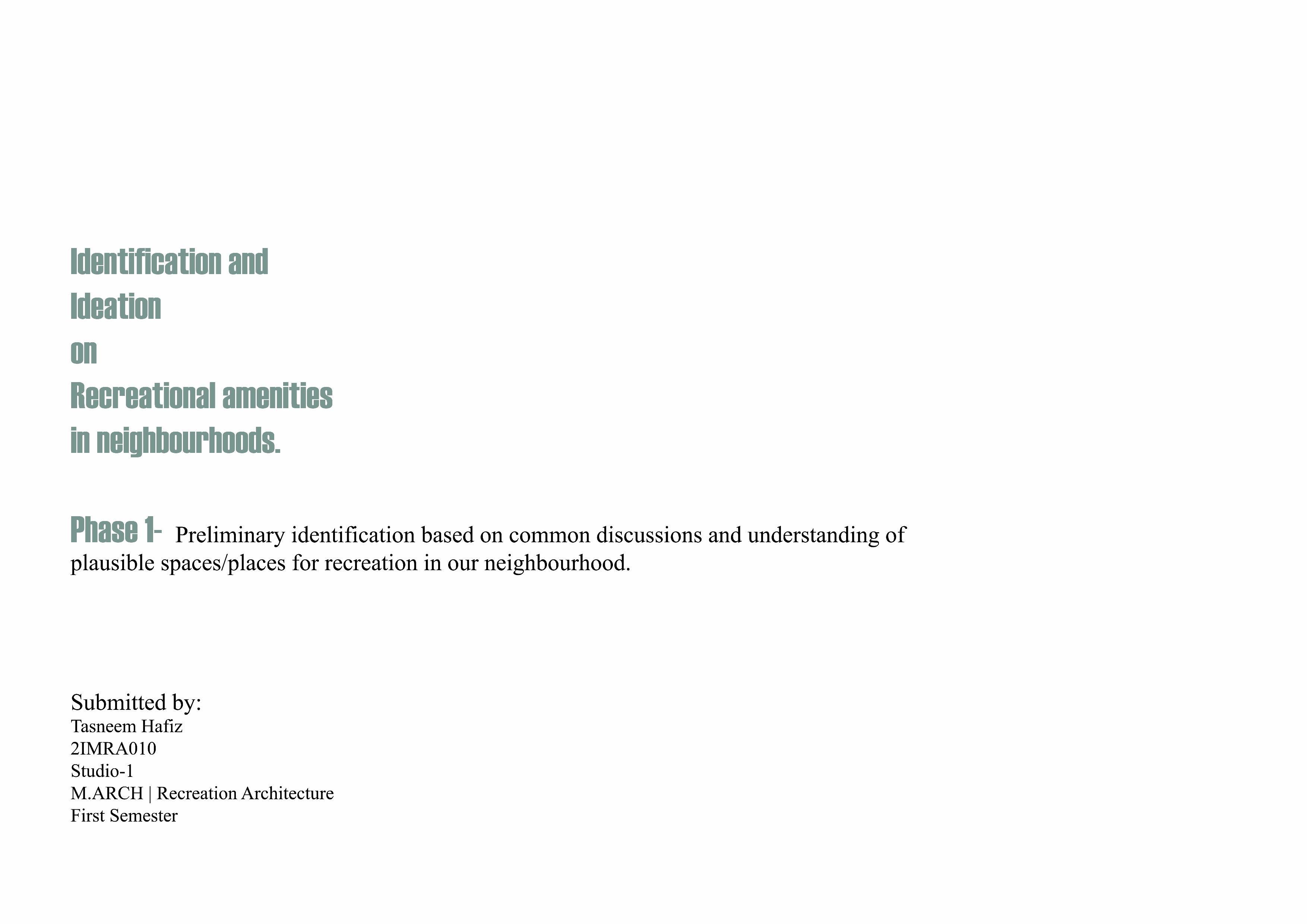 ENHANCING RECREATIONAL AMENITIES IN NEIGHBORHOOD THROUGH A SUSTAINABLE APPROACH: A CASE OF S.S. ROAD