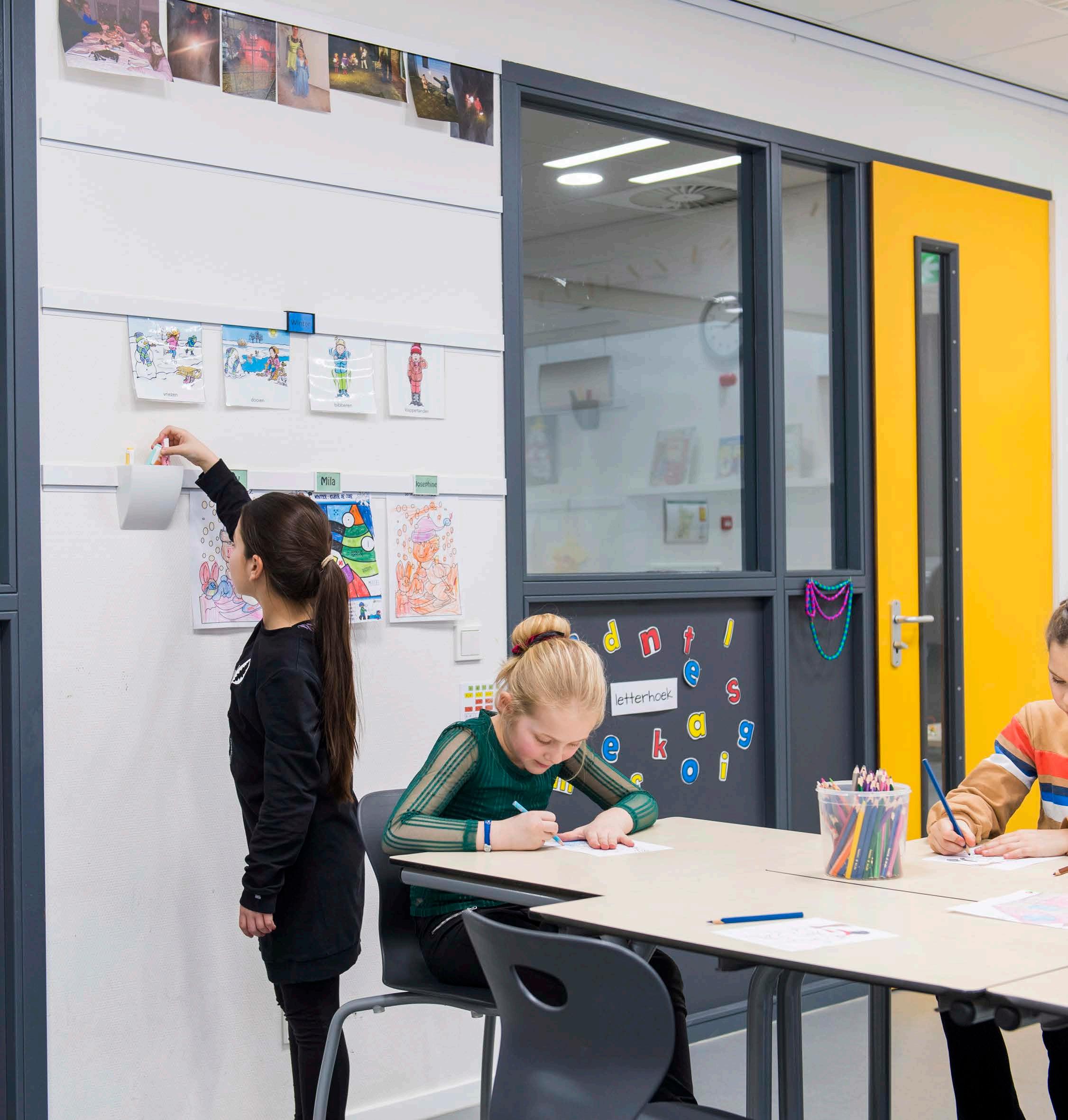 Uw school. Klassen vol kinderen. Levenslustig. Speels. Lekker bezig. En de resultaten? Fraaie versieringen voor alle wanden en muren. Want dat hoort, bij uw school. Maar niet met lelijke plakband of slordige punaises. Het kan op het allermooist: met Artiteq wandinrichting. Jawel, ook voor uw school. Artiteq is daar zelfs in gespecialiseerd. Sinds 1995 zorgen we voor diverse oplossingen in de vorm van schilderij ophangsystemen en presentatiemiddelen. Stelt u zich eens voor hoe uw school er zal uitzien met de Artiteq Info Rail. Dat is een ophangsysteem waarin de tekeningen van de kinderen, maar ook documenten en mededelingen, functioneel en tijdbesparend kunnen worden opgehangen. Een prachtig gezicht en het zorgt ook nog eens voor het behoud van de wanden van het Gaatgebouw.ueens na. Wat wordt er allemaal wel niet opgehangen in uw schoolgebouw? Wanddecoraties, prikborden, whiteboards… Het schilderij ophangsysteem van Artiteq lost het op: praktisch en flexibel. U ziet het: Artiteq is specialist in ophangsystemen. We helpen u met de wandinrichting die past binnen uw school of instelling. Deze brochure geeft een beeld van de mogelijkheden. Natuurlijk is uw school uniek. Maar ook daarvoor hebben we de beste producten. Voor een unieke school… met extra’s!