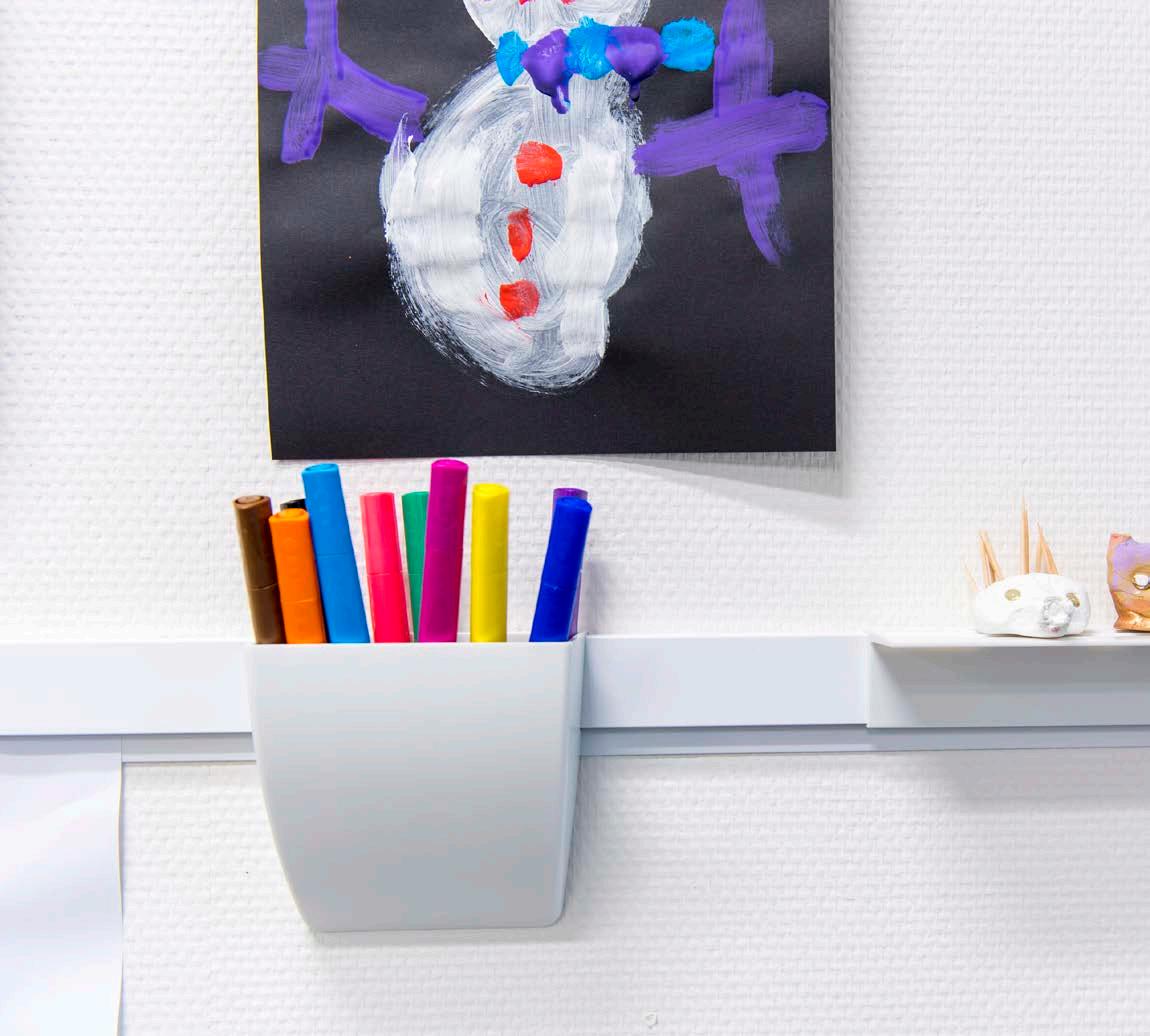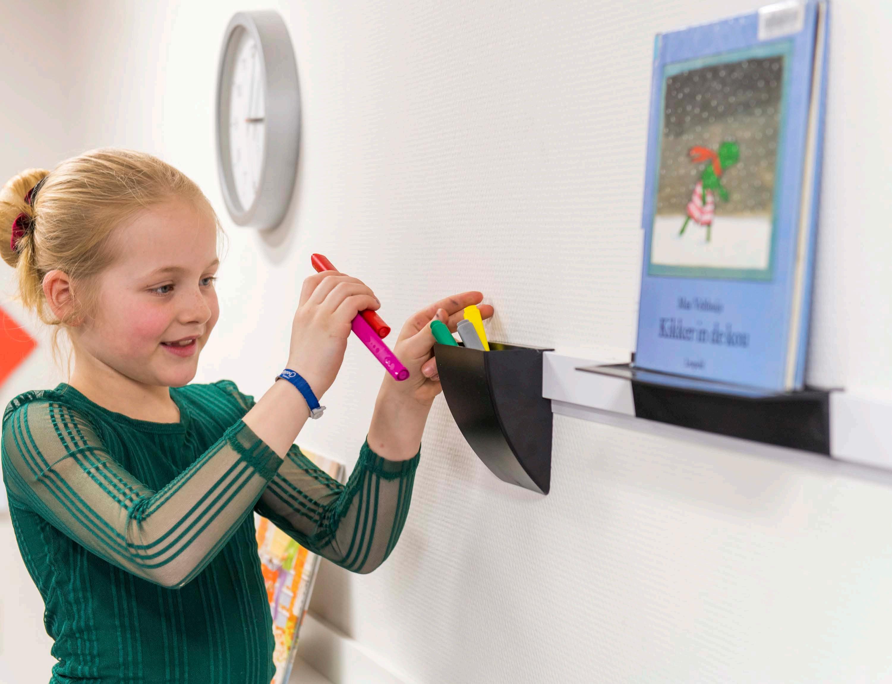 Op school wordt er veel geknutseld, getekend en geleerd. Hoe fijn als de pennen, scharen, stiften en potloden op een duidelijke plek te vinden zijn en makkelijk zijn op te bergen. Met de Storage Clip wordt dit een feestje. Dit handige bakje klik je met 1 hand op de Info Rail op de gewenste plek. De stiften, potloden of scharen erin, en de kinderen kunnen er makkelijk wat uithalen.