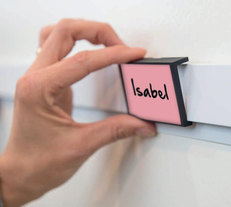 Nu herkenbaarder dan ooit, door de Info Rail met speciale naamclip: de Info Rail me Clip in de kleuren wit Meten zwart.deme -Clip voegt u een extra persoonlijk en mooi vormgegeven element toe aan het Info Rail systeem.