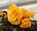 The common names reflect this peculiar fungus’s appearance. Essentially it lacks the obvious structures of most other woodland fungi, and looks like an orange, quivering, gelatinous blob. The smooth fruit-body has characteristically irregular shape, with soft jelly-like texture. The yellow lobes are actually quite tough, greasy, and slimy when wet. They are hard when dry. Colour ranges from pale yellow to bright orange, changing to