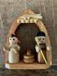 paint. A small piece of thick cardboard combed upwards over the end of the paintbrush would flick the paint over the paper. The edges of the nativity characters put out on the paper needed to be covered well. When they were removed afterwards, it left a snowy silhouette type scene.
