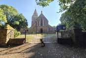 7. Continue straight ahead to walk across the top of a cul-de-sac and then towards a block of garages. Thread between the garages and pass through a metal chicane to continue along a footpath. After a short distance pass by a graveyard on your right and then Annesley All Saints Church on your left.