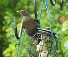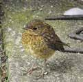 to peck at fat-balls and especially the soft suetballs. I have noticed this year that these recentlyfledged babies are exceptionally approachable and wonder whether this behaviour will carry on into adulthood. Both of the adults of my pair of robins will come when called if I offer up mealworms or dried calci worms whilst making a chirping noise with my lips. Hopefully, the young robins will learn to do the same. I will have to see if this approach works with the blue tits as well. The great spotted woodpecker is coming to the fat-balls or the peanuts very regularly, but it is only the male at present. It appears to grasp a beak-full of food and then head back across to the woodland close-by. I guess the female and youngsters are still in the nest.