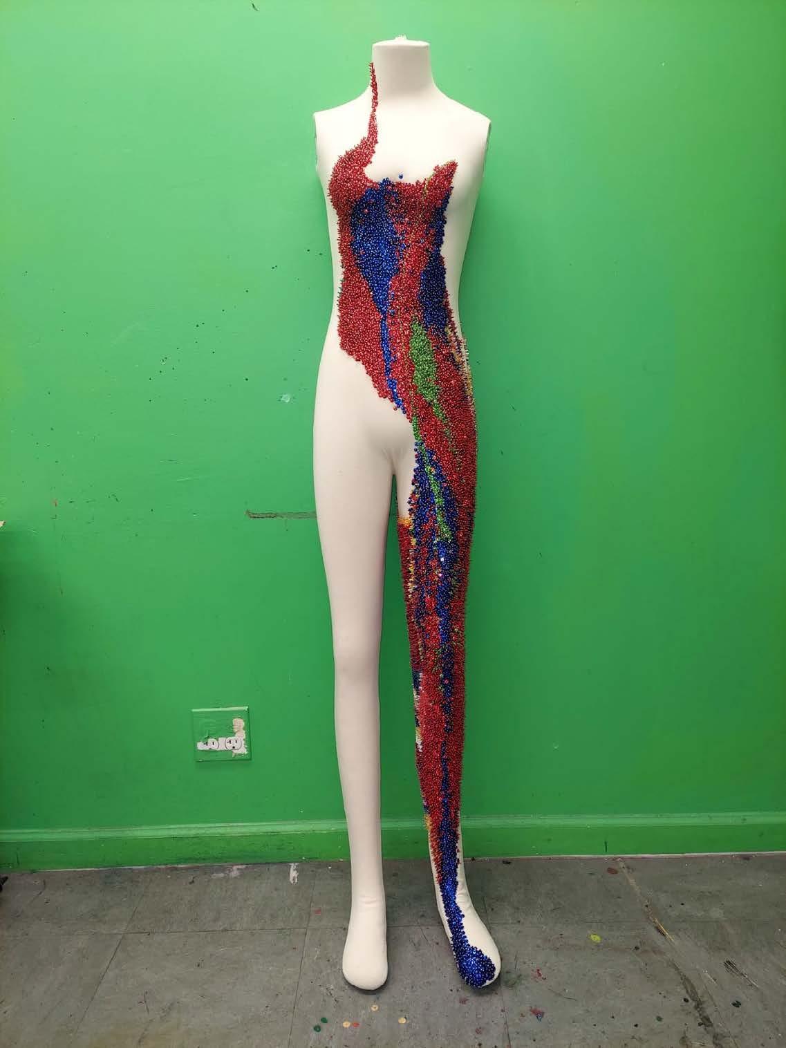 Right now, I’m working on the leg of the mannequin. I told Creative Growth Staff I wanted to do a life-size figure. And they said OK! When I took her out of the box, I named her Eliza. I felt happy. I thought about how she might look.