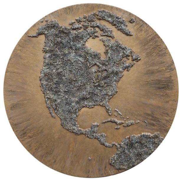 Victoria Kovalenchikova (Belarus 05.28.1978 - ), The World, 2024, mixed media,oil on canvas,epoxy, diameter 59 in