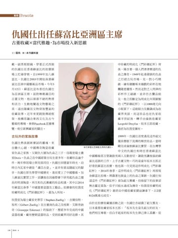 家仇焱之家族,父親仇大雄為仇焱之三子,母親是瑞士畫 家Doris。仇焱之在中國經營古玩生意多年,收藏珍品逾千 件,晚年移居瑞士與兒孫同住。仇國仕回憶童年時光,幼 時日內瓦家中總是「滿目古瓷」。並非有意追隨祖父的腳 步,仇國仕原先學習中國歷史、進而愛上了中國藝術。加 入蘇富比實習工作,卻讓他在因緣際會下研究起仇焱之擅 長的明清陶瓷,再次和仇氏舊藏的珍品相遇,其中以2014 年蘇富比春季「中國重要瓷器及工藝品」拍賣會的玫茵堂 珍藏明成化〈鬥彩雞缸杯〉,最為人所知。