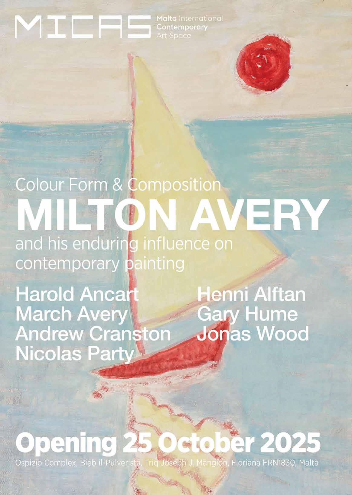 The Malta International Contemporary Arts Space (MICAS) will once again play host to a rare, and unique showcase of modern and contemporary art in October 2025. Widely recognised as an important 20th American artist, Milton Avery’s (18851965) works are held in multitude of key institutional collections across America, but his first museum exhibition in Europe was only recently in 2022 at the Royal Academy of Arts in London.
