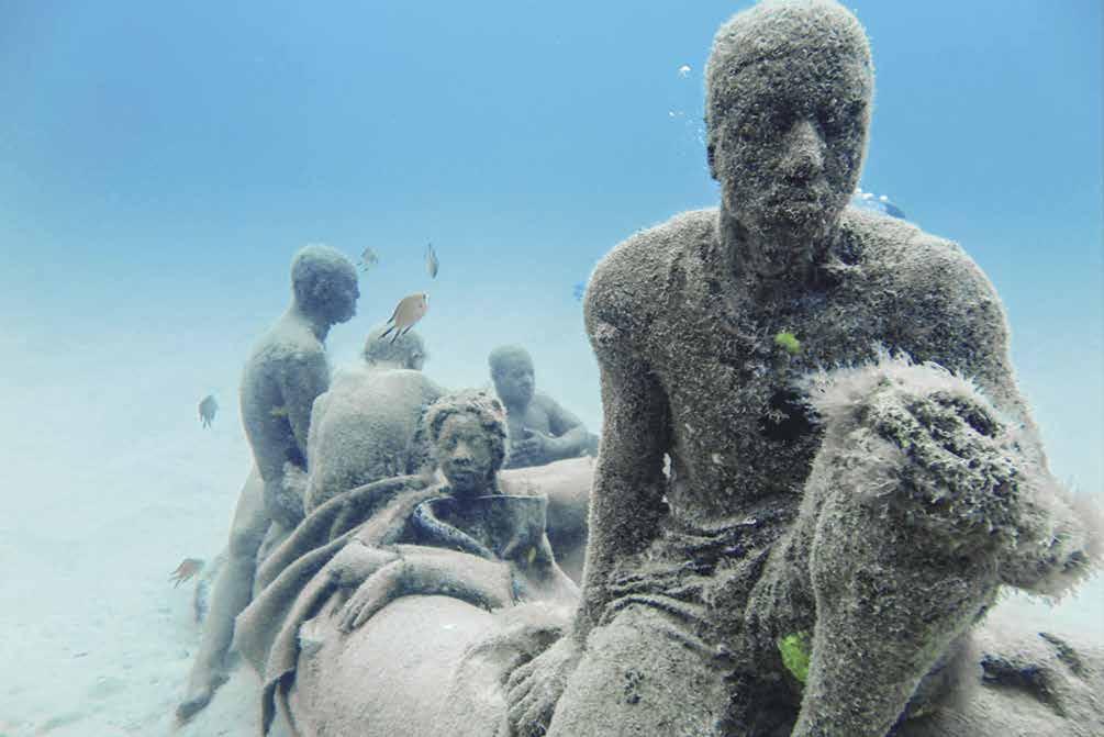 So, as I suppose you have gathered, I think we are getting it altogether wrong. And just in case you happen to capture some free Wi-Fi, generously offered by the powers-that-be, here is an example of a project that you could look up on the internet, that is designed to add another layer to the evolution of a particular marine environment, and that was realised to preserve the area in a sustainable way, to create a tourist attraction that is financially profitable and to add an artistic monument to the place. The Museo Atlántico is completely submerged under the Atlantic Ocean, a poignant reminder of the often-destructive impact of Man’s intervention in the natural world. The underwater museum, the first of its kind in Europe, situated off the coast of the island of Lanzarote, consists of 300 man-made sculptures, featuring amongst a myriad of others, a raft of refugees on an uncertain voyage or humans posing for selfies or taking pictures, that change and transform over time as the maritime currents react
