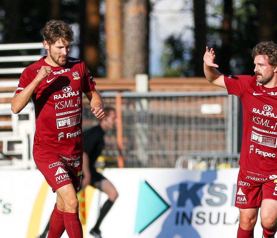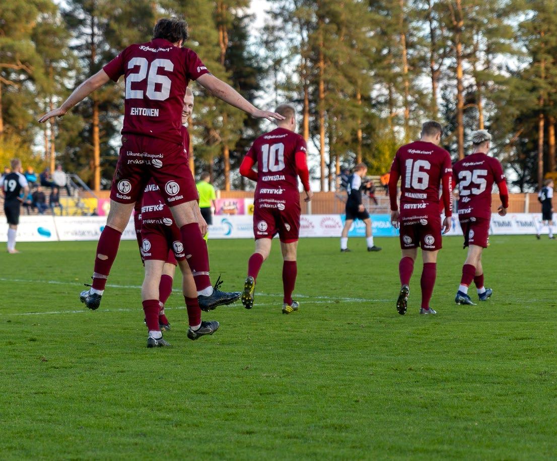 Edustusjoukkueen sarjanousu mahdollistaa paljon myös alueen junioreille.Esteitä pelaajakehitykselle teettävät valitettavasti Jy väskylän olosuhteet tai oikeammin niiden riittämät tömyys. Laadukas talviharjoittelu on tehty lähes mah dottomaksi, koska olosuhteita on aivan liian vähän suhteessa alueen pelaajamäärään. Meidän alueella on yli 4000 harrastajaa ja kaupungissa vain yksi halli, jos sa voi talvisin harjoitella. Toivon, että tämä epäkohta korjataan mahdollisimman pian ja seuraavissa liikunta paikkarakentamista koskevissa keskusteluissa halutaan puuttua jalkapallon vallitsevaan olosuhdekriisiin!