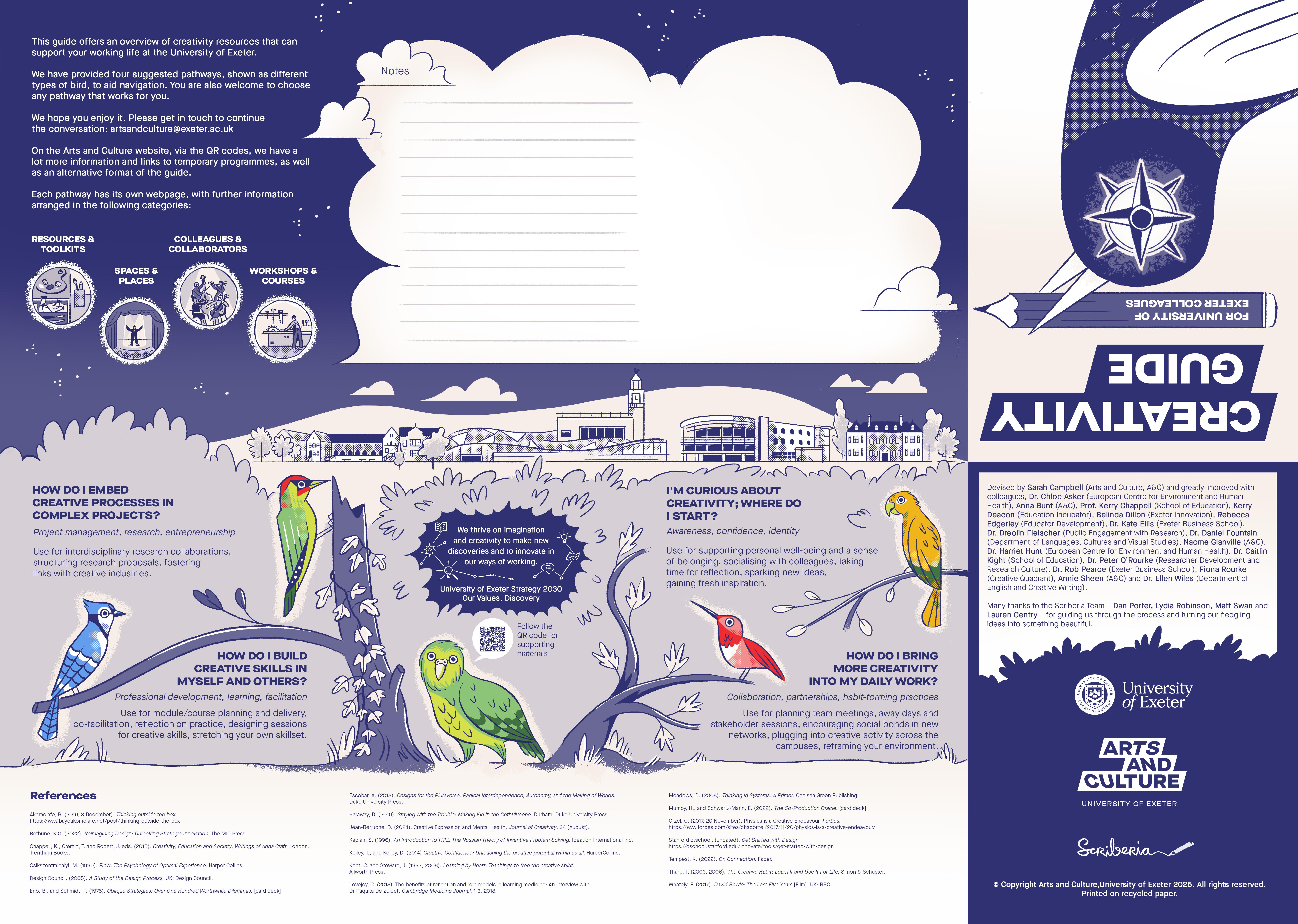 At the University of Exeter, there are many ways to engage with creativity, with applications ranging from personal well-being to organisational competitive advantage. To help navigate the options, we have collaborated with Scriberia to  creative a Creativity Guide.