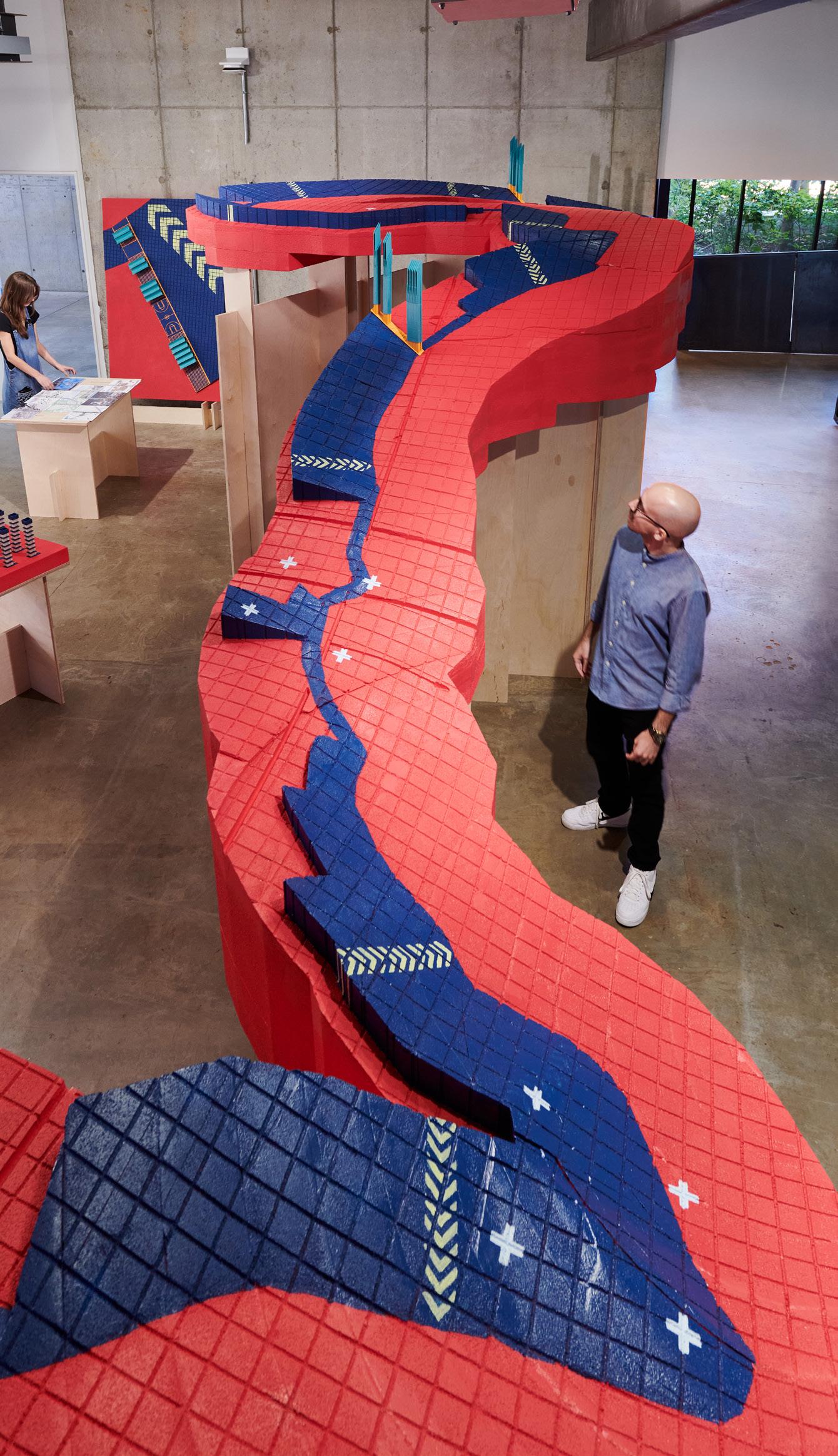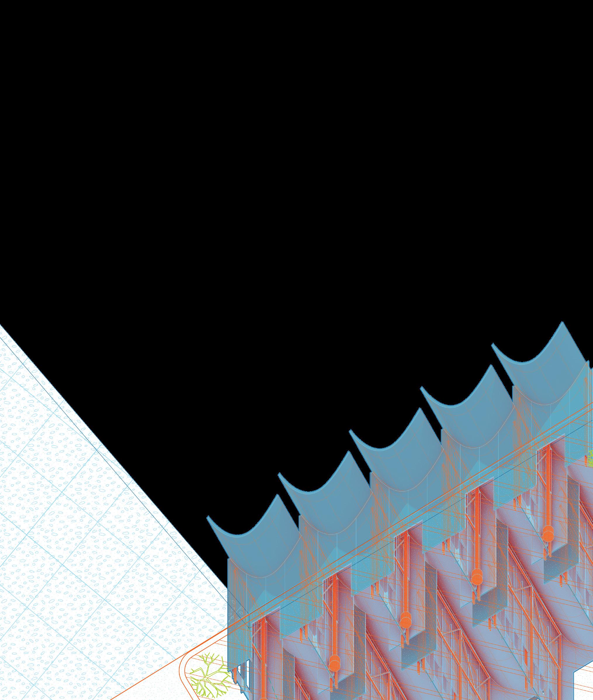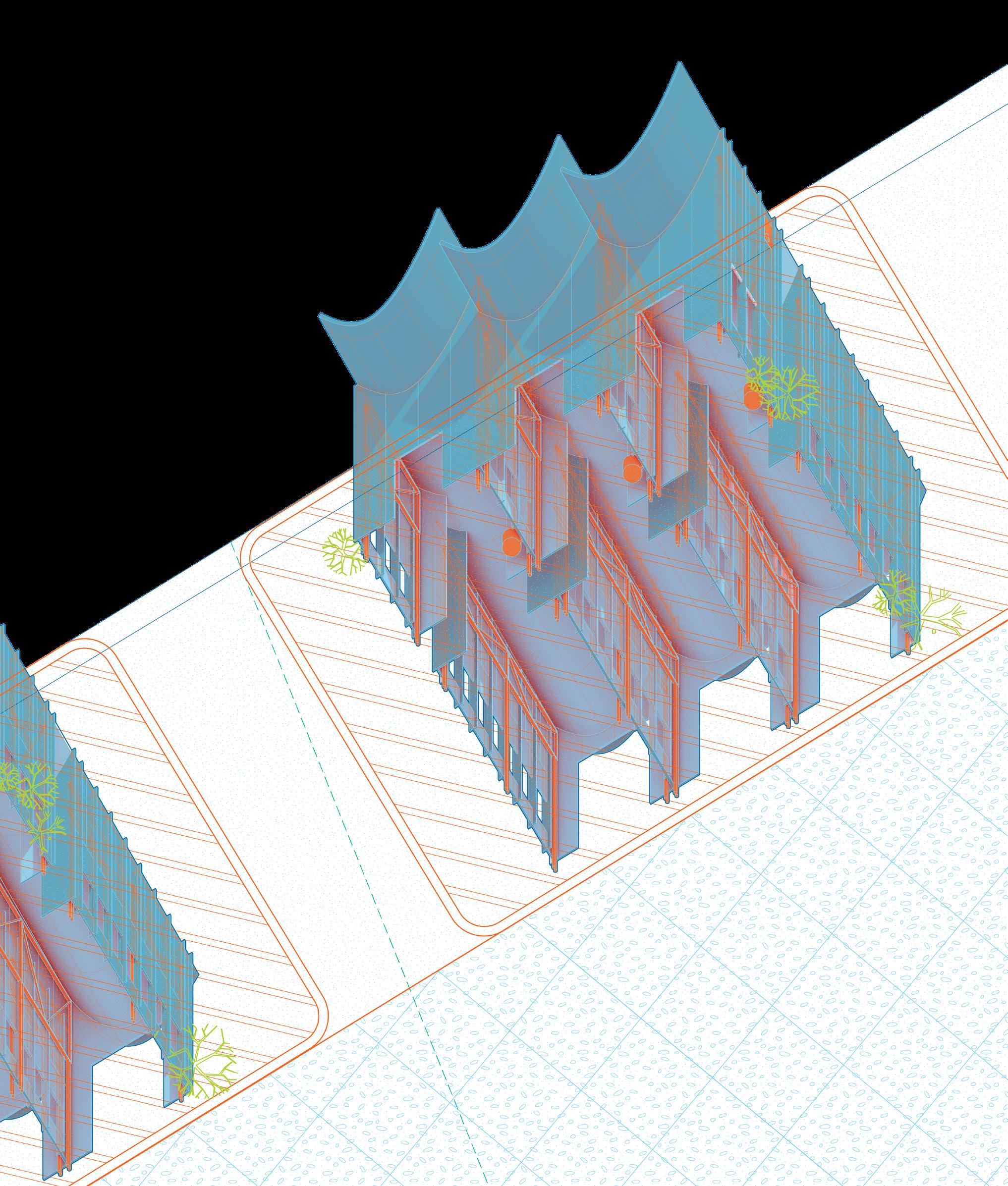 The Portage County Spillway was rehabilitated by the Great Lakes Architectural Expedition to create a continuous public space for the entire county. With integrated supergraphics to enable satellite monitoring of water flows, the Expedition spearheaded a ban on the construction of further impervious surfaces county-wide to ensure equitable access to fresh water on both sides of the boundary. In addition to the permeable streets on the Lake Erie side of the Spillway, a full series of hazard maps were developed to educate residents on the new risks to existing structures while highlighting the public amenities developed on the Spillway’s surface.