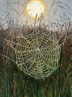 “Henry’s drawing is so outstanding that I felt it had to be included in this show. I am very impressed by the level of detail. At first I tried to adhere to Henry’s original composition but eventually I arrived at my own interpretation of the beauty and complexity of the spider web. The title, ‘Indra’s Web’ refers to the concept of Indra’s Net, a powerful Buddhist metaphor which illustrates the interconnectedness of all things.”