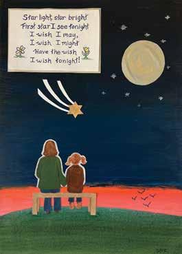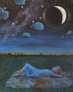 “Merritt’s theme of a private picnic under the stars is a compelling idea. Her sweet image of a happy girl just enjoying the solitude and the wonder of a dramatic night sky is an inspiring subject that I was happy to reimagine, hopefully retaining the innocence, simplicity and quiet magic of the original.”