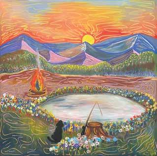 “I was drawn to the pond and mountainscape as a break from the chaos of life. I felt connected to the stillness of nature and being alone by the pond to fish.”