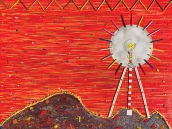 Acrylic paint, clay, pencils, crayons, 16 x 20