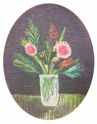 “I was immediately drawn to the elegance and simplicity of this delicate still life, and was intrigued by the unusual plants depicted. The flowers in the original artwork look like Venus flytraps and other succulents, which inspired me to take a closer look at the flowers that grow in my own garden. I was equally in love with the exuberance of Cooper’s mark-making–so many wondrous lines and patterns and line weights! It’s an absolutely beautiful drawing.”