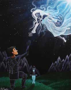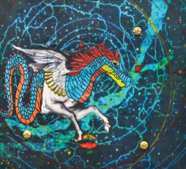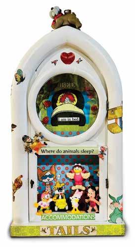 STACIE KUSHNER creates pieces that invite viewers into whimsical, otherworldly spaces. She enjoys experimenting with mixed media and unconventional materials to bring her visions to life. This is her first time participating in REIMAGINE, and she is thrilled to honor youthful creativity in this unique way.