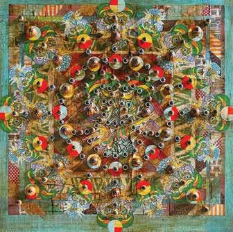 Hand-cut paper collage and alcohol inks on panel 26 x 26 round Value: $990