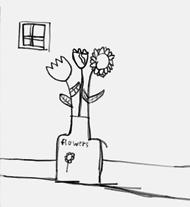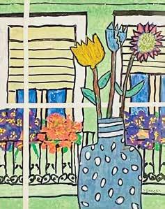 “This delightful and wonderfully simple drawing left space for imagination. The window placed high up on the wall made me wonder what was outside of it. I decided to bring it down to the level of the vase and take a peek outside.”