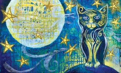 “I chose the drawing of a cat because they’re both mysterious and expressive— elegant one moment, ridiculous the next. This one began as a playful sketch and quickly took on a life of its own, somewhere between a guardian, a diva, and a dream.”