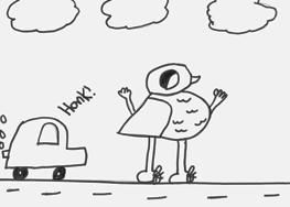 “Not only do I love the style in which the subject matter was drawn, but it made me imagine a world of giant birds and cars that need to experience what it feels like to fly.”