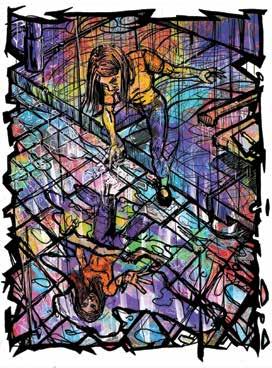 CHERYLE WALTON is a Kentucky artist based in Lexington. She works in a mixed media technique of an acrylic color under painting, covered with black watercolor. The image is redrawn using a paintbrush dipped in water and used to remove the black in the areas she wants to create the finished image.