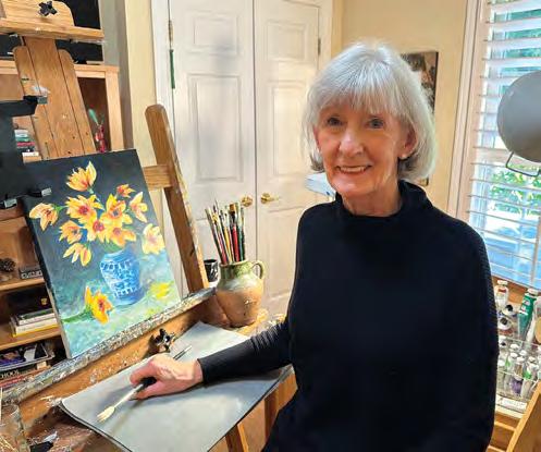 Jean is an active member and instructor at the Artists League of the Sandhills in Aberdeen and has taught watercolor classes at Sandhills Community College. Painting trips to France, Italy and Ireland have provided inspiration. Paintings from those trips have sold internationally and have found a home in many private collections across the US. Her painting, Rachel’s Hat , hangs at the Clara Mclean House in memory of a dear friend from the Healing Garden volunteers. She also designed and painted Market Square in the Snow , utilized by the Village of Pinehurst for its successful 2018 Christmas ornament and cards.