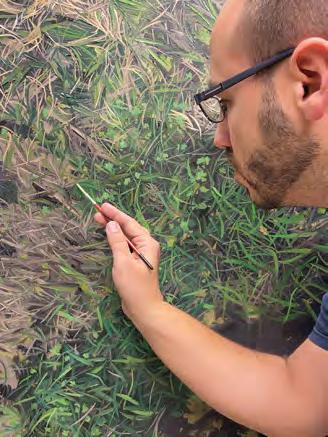 for the tactility of the paint. His themes center on things that stop us in our tracks, anything that brings you pause – from large moments like sunsets to more quiet scenes that seem to “breathe” in his paintings.