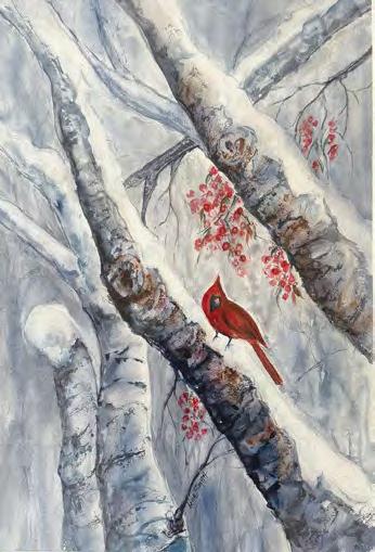 She earned degrees from Mansfield University in Elementary Education and a Master’s degree from SUNY Cortland. She dabbled in painting from time to time, but not until after retiring from a successful 30-year teaching career in New York did Jean turn to a love of drawing and watercolor. “I have always admired the beauty and simplicity of watercolor. When paper, pigment, brush, and water come together in the right way, these elements transform into ethereal beauty and power. Not every painting works, but is part of the journey to the next one,” she says.