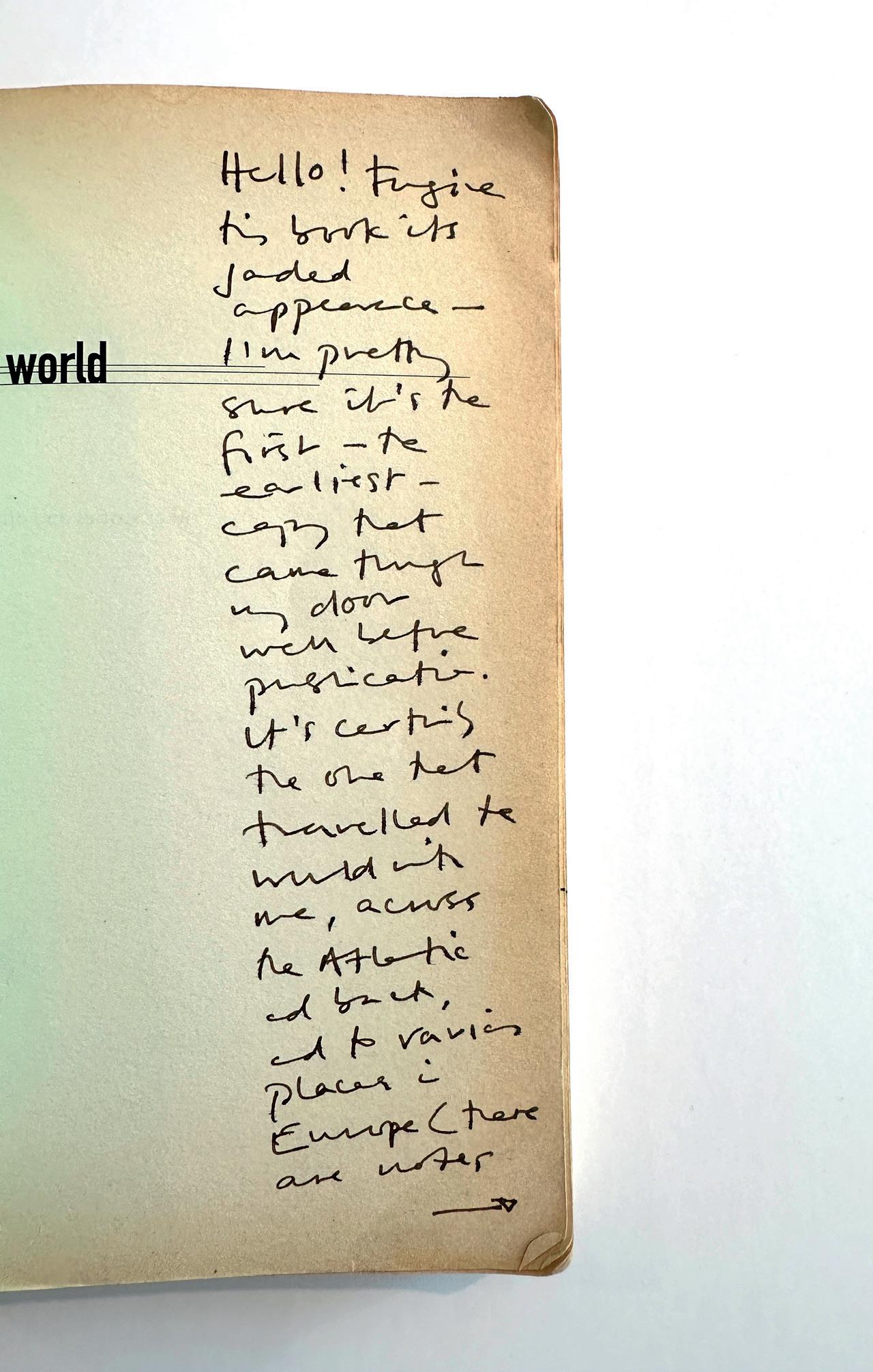 Ali Smith’s personal, original and travelling reading copy of Hotel World, first edition and first printing, 2001. Including a beautiful personal note from the renowned author.