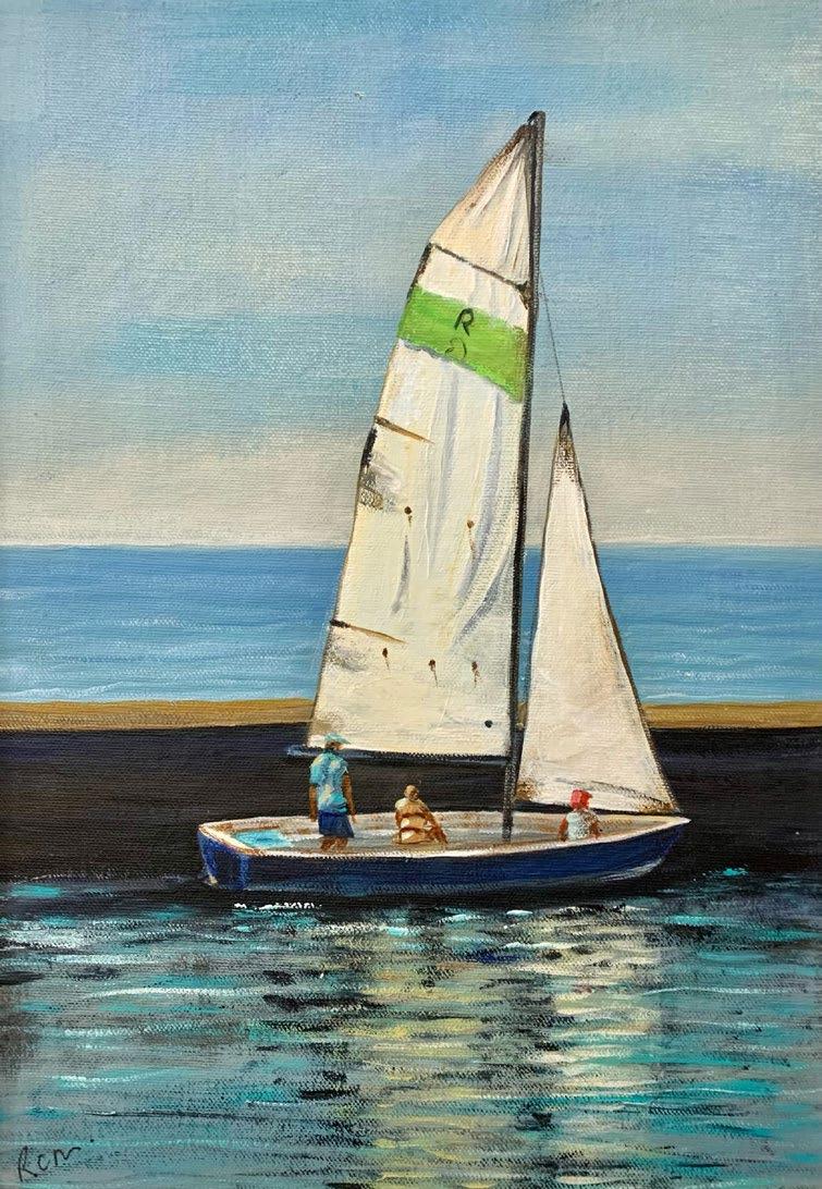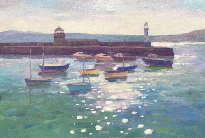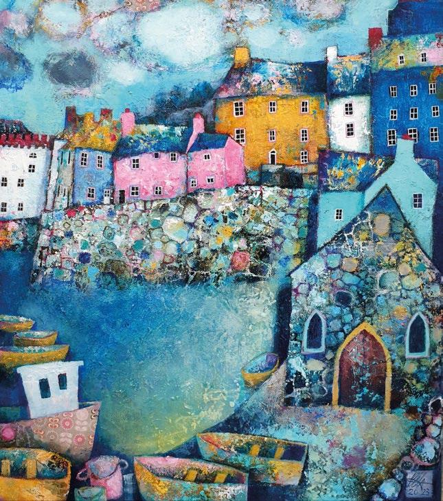 Her paintings have a unique charm full of quirky boats, harbours, colourful townscapes and dreamy waters that evoke memories of happy holidays. The essence of her work is about being grounded, rooted and belonging with a sense of peace, captured in colourful textures and dappled light, which she creates in her gallery.