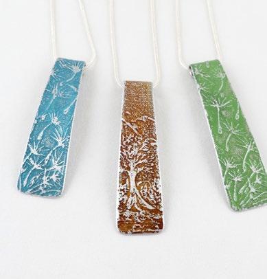 Anna has been designing jewellery and artwork since 2001. She specialises in recycling plastics, but enjoys working in a variety of media allowing her to explore her passion for recycling, the environment and illustration in her designs. Her plastic ranges are created using recycled bottles and have a 95% recycled content. Her latest bold range explores colour and shape in cuffs that are adjustable so fit almost any wrist. They are light to wear, absolutely contemporary, and are a best seller in Bluestone. Aluminium is one of the most efficiently recycled materials and Anna uses it to create delicate and beautiful scenes reflecting her love of nature etched onto cuffs earrings and pendants. Anna also somehow finds the time to create and teach artwork with local schools and community groups.