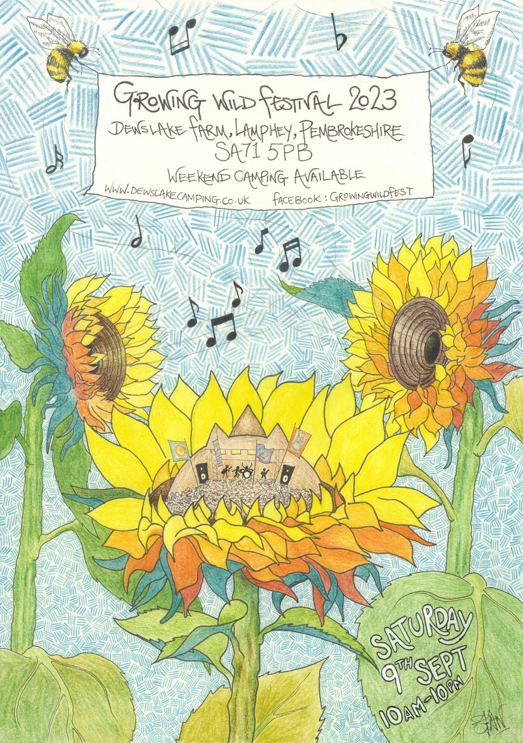 The Growing Wild Festival, a children’s festival celebrating music, art and nature. The 4th Growing Wild Festival will be on Saturday 9th September 2023 at Dewslake. An event loved by the local community and involving