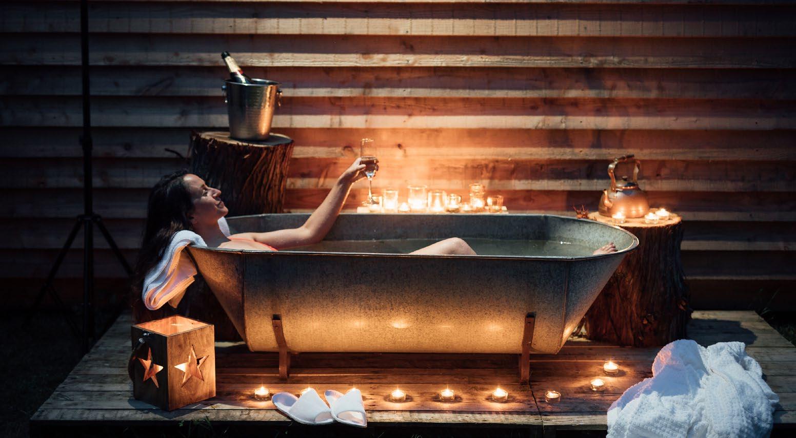 Get those cabin vibes you’ve always wanted, staring up at the stars in a wood-fired Swedish hot tub.