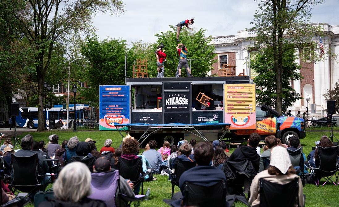 Cirque Kikasse: SANTÉ brought acrobatics, trampoline, and food-truck surprises together in a high-energy show that delighted audiences of all ages. This event was co-presented with Yale Schwarzman Center, Westville Village Renaissance Alliance, and The Committee of the Proprietors of the New Haven Green.