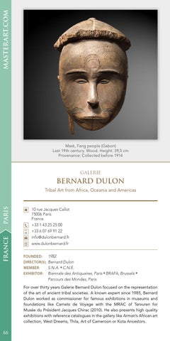 For over thirty years Galerie Bernard Dulon focused on the representation of the art of ancient tribal societies. A known expert since 1985, Bernard Dulon worked as commissioner for famous exhibitions in museums and foundations like Carnets de Voyage with the MRAC of Tervuren for Musée du Président Jacques Chirac (2010). He also presents high quality exhibitions with reference catalogues in the gallery like Arman’s African art collection, West Dreams, Thila, Art of Cameroon or Kota Ancestors.