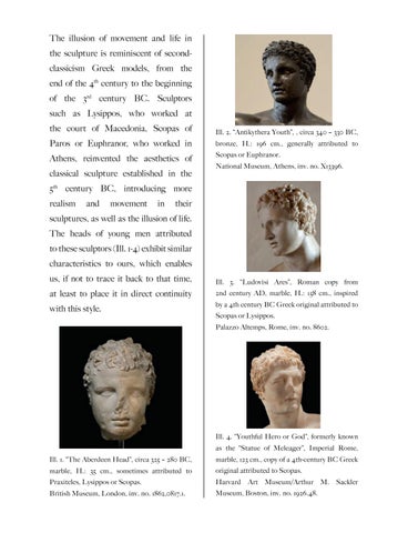 Ill. 4. “Youthful Hero or God”, formerly known as the “Statue of Meleager”, Imperial Rome, Ill. 1. “The Aberdeen Head”, circa 325 – 280 BC,